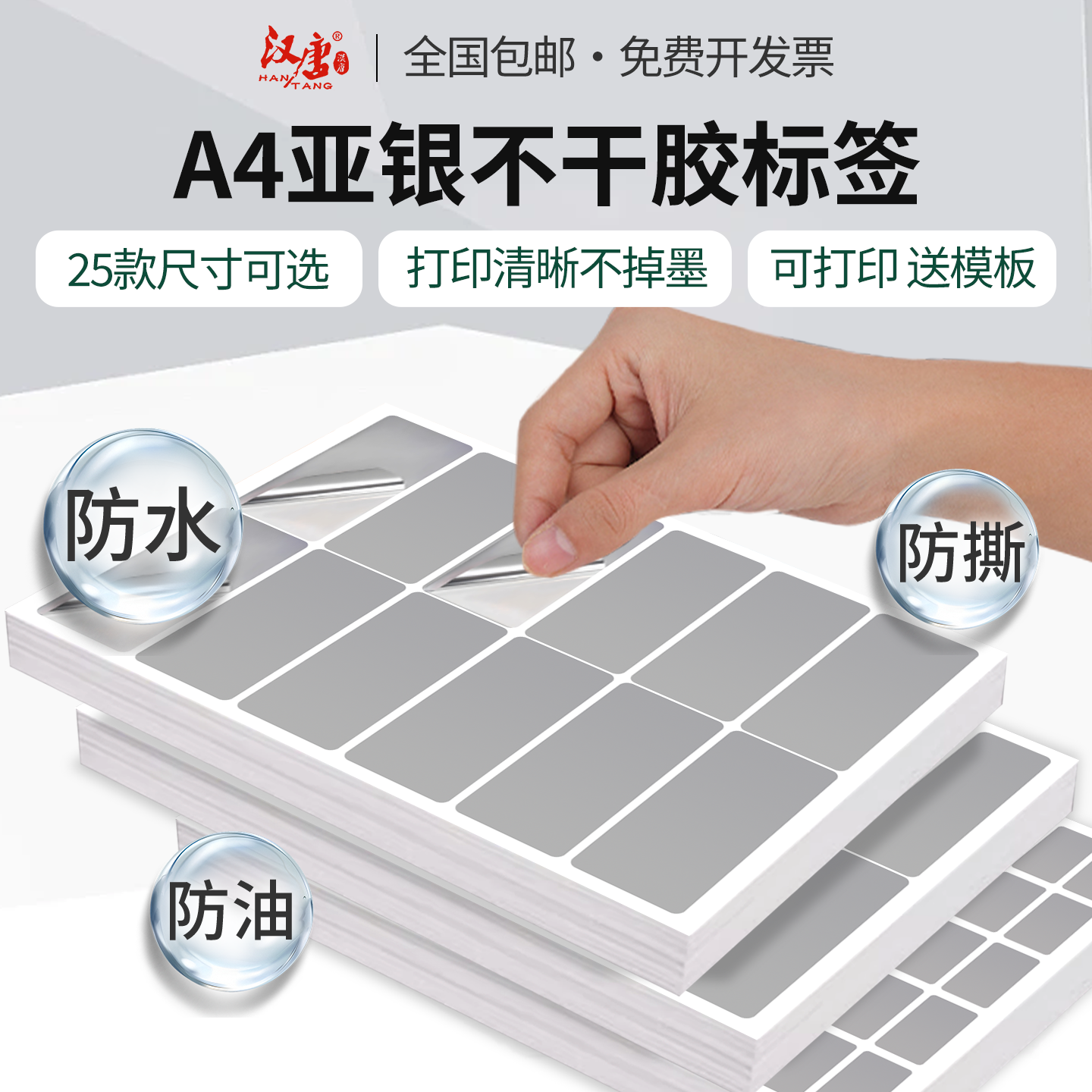 【无需裁剪】哑银a4不干胶标签纸打印纸a4不干胶PET标签贴纸5丝加涂层防水耐高温背胶激光亚银不粘胶打印标签