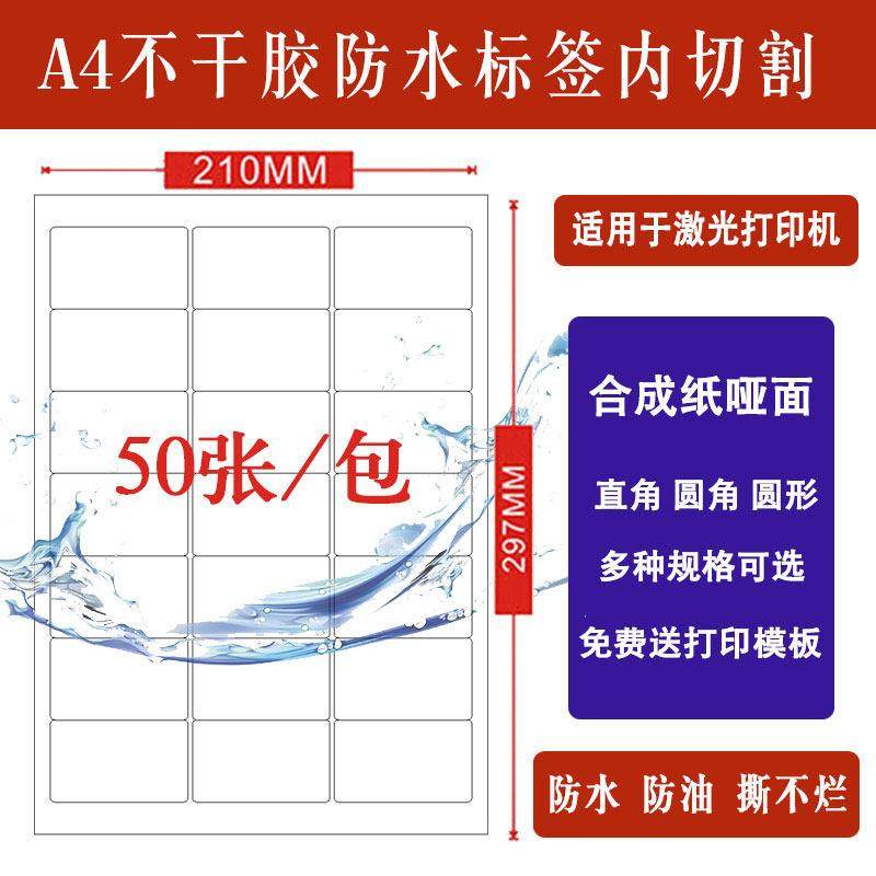 防水白色A4不干胶标签纸空白手写激光打印玻璃磁砖不留胶PP合成背胶自粘贴定制固定资产物料仓库标识分类贴纸