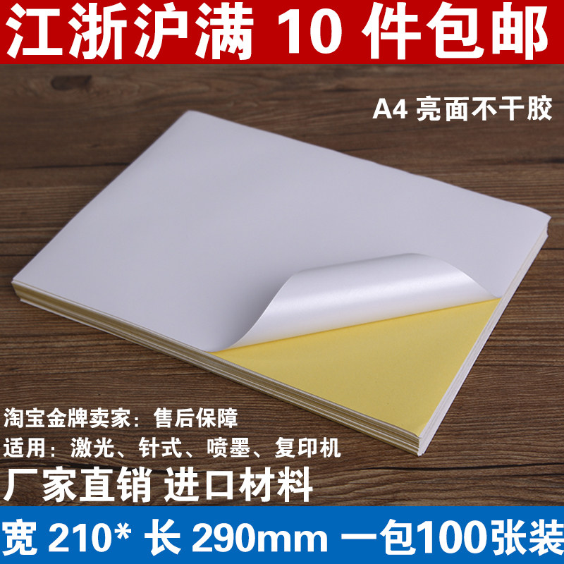 A4不干胶a4打印纸不干胶亮面100张内分切背胶打印a4不干胶纸打印纸标签纸自粘贴激光喷墨打印纸光面哑面贴纸
