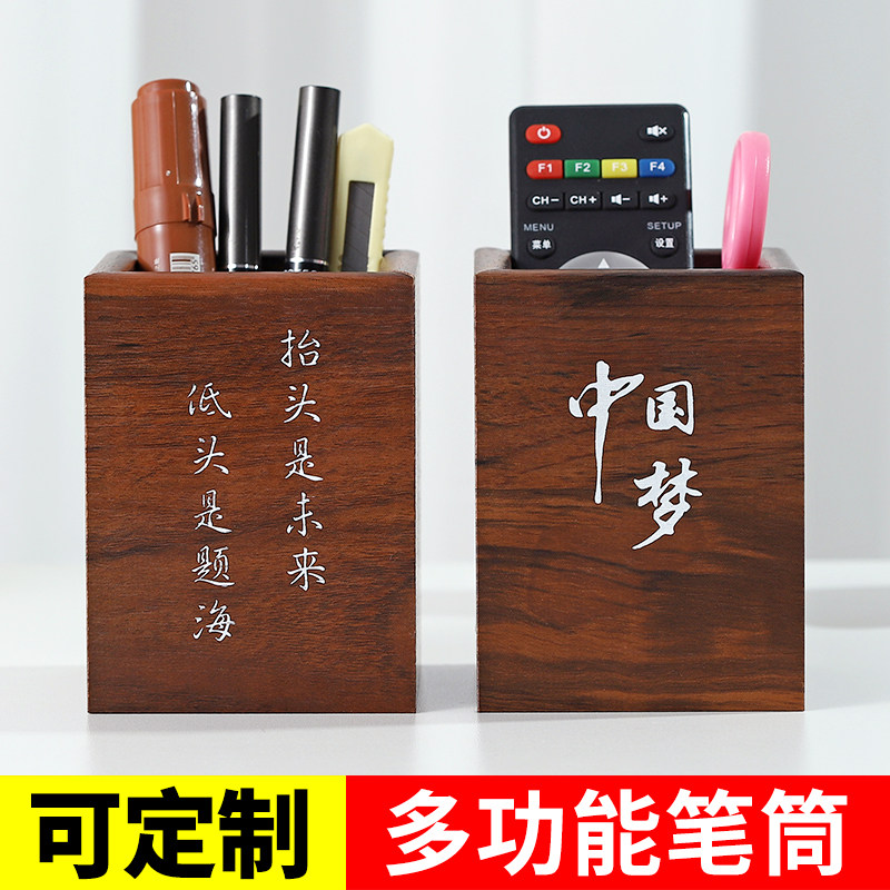 木制方形笔筒中高学生刻字办公用品书桌面收纳盒小朋友毕业创意定制 毕业礼物中国风摆件印制logo广告
