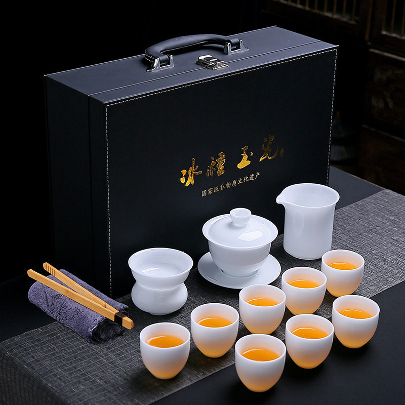 冰种玉瓷茶具礼品印制logo单位银行年会团建会客家用泡茶轻奢礼盒