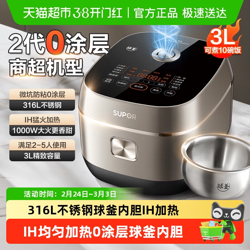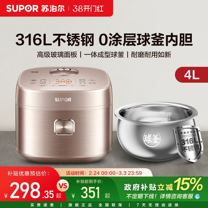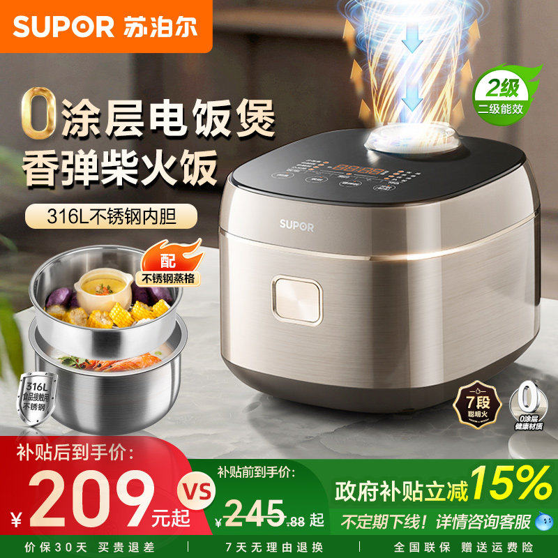 苏泊尔电饭煲家用0涂层多功能电饭锅3-4人官方旗舰正品316L内胆