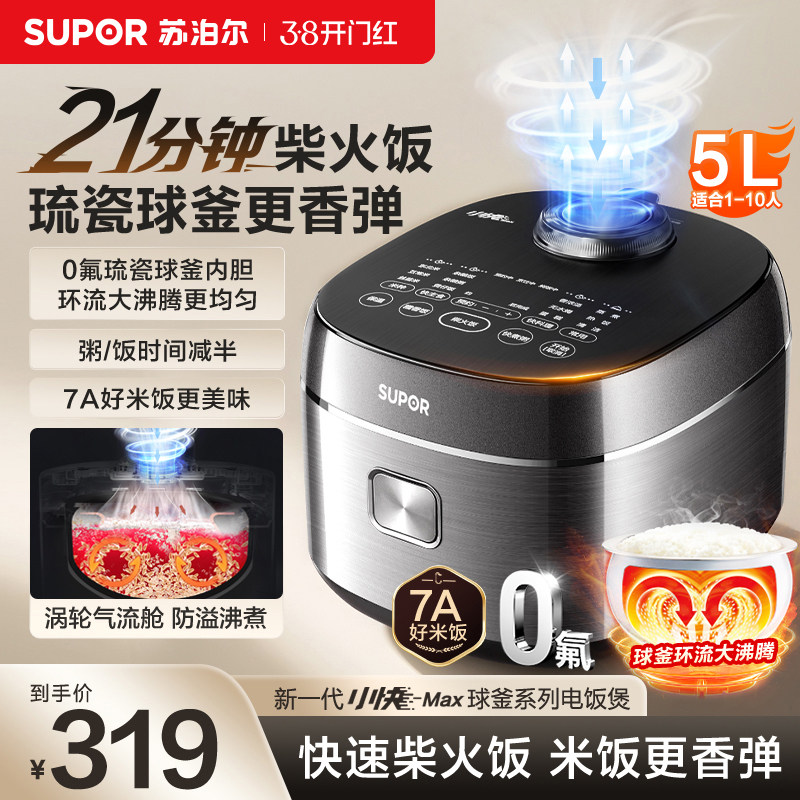 苏泊尔电饭煲家用5L大容量多功能智能电饭锅球釜柴火饭煮饭锅旗舰