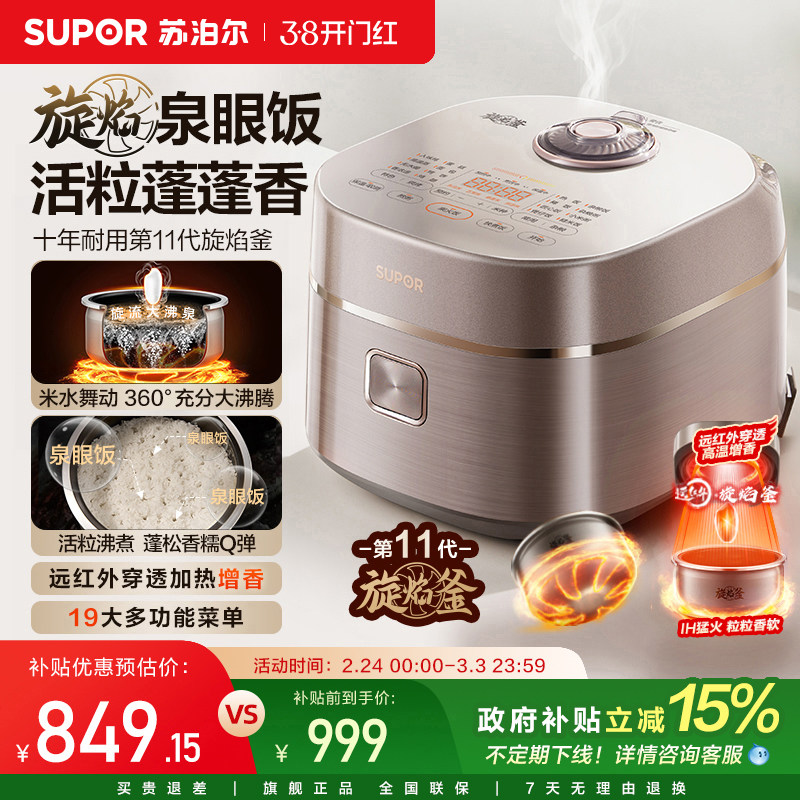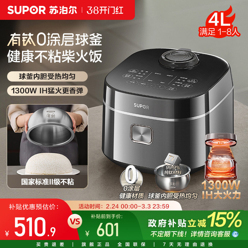 苏泊尔电饭煲家用有钛旋焰釜4L多功能煮饭锅3到4人IH加热旗舰新款