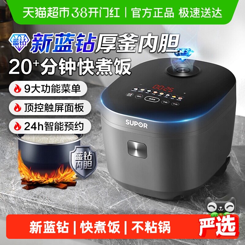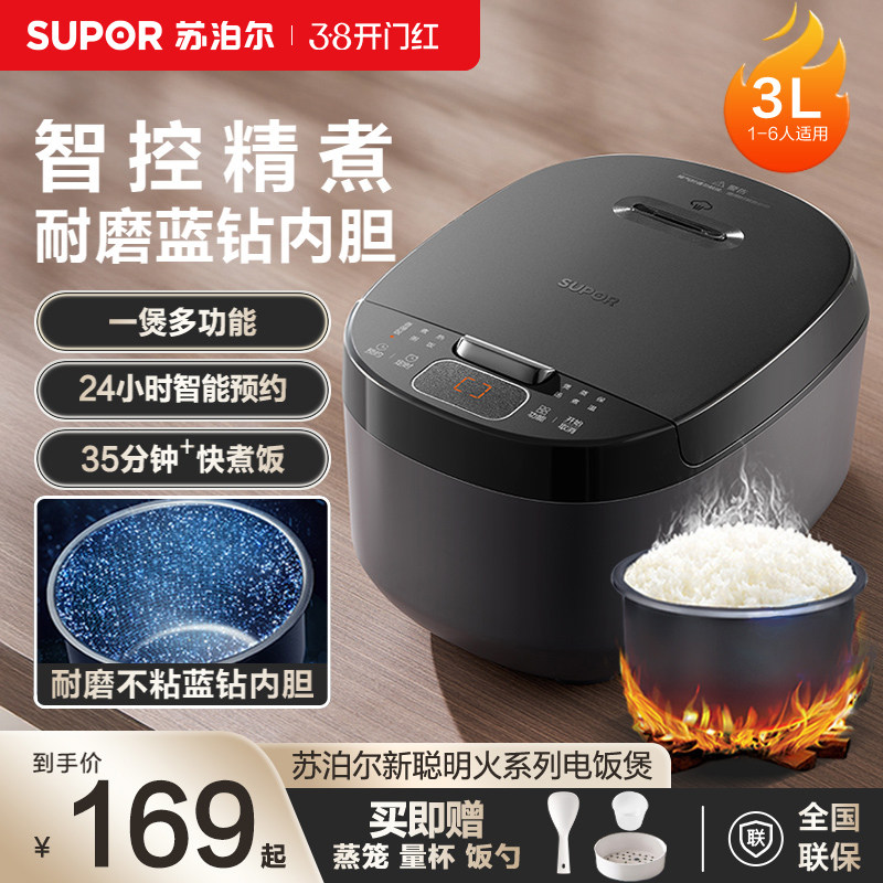 苏泊尔电饭煲蓝钻不粘内胆多功能智能预约3L家用容量触控煮饭煲