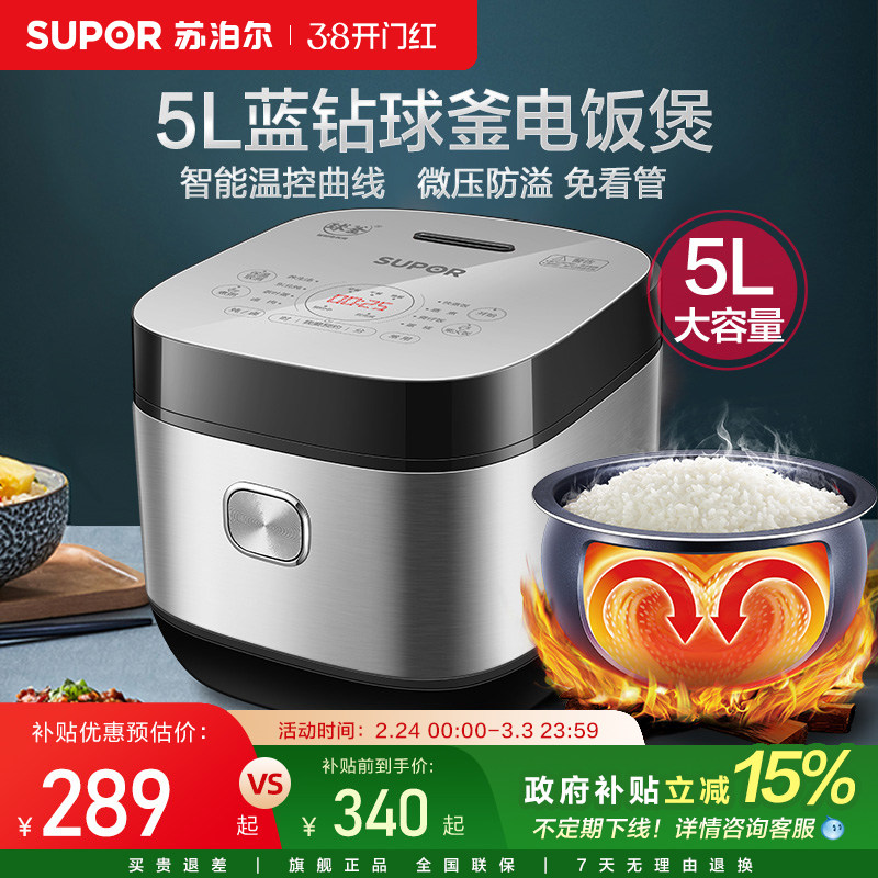 苏泊尔电饭煲政府补贴5L大容量多功能电饭锅柴火饭球釜煮饭锅正品