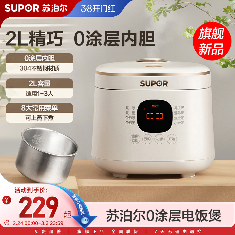 苏泊尔小型电饭煲1到2-3人迷你煮饭锅家用陶瓷油内胆官方旗舰店