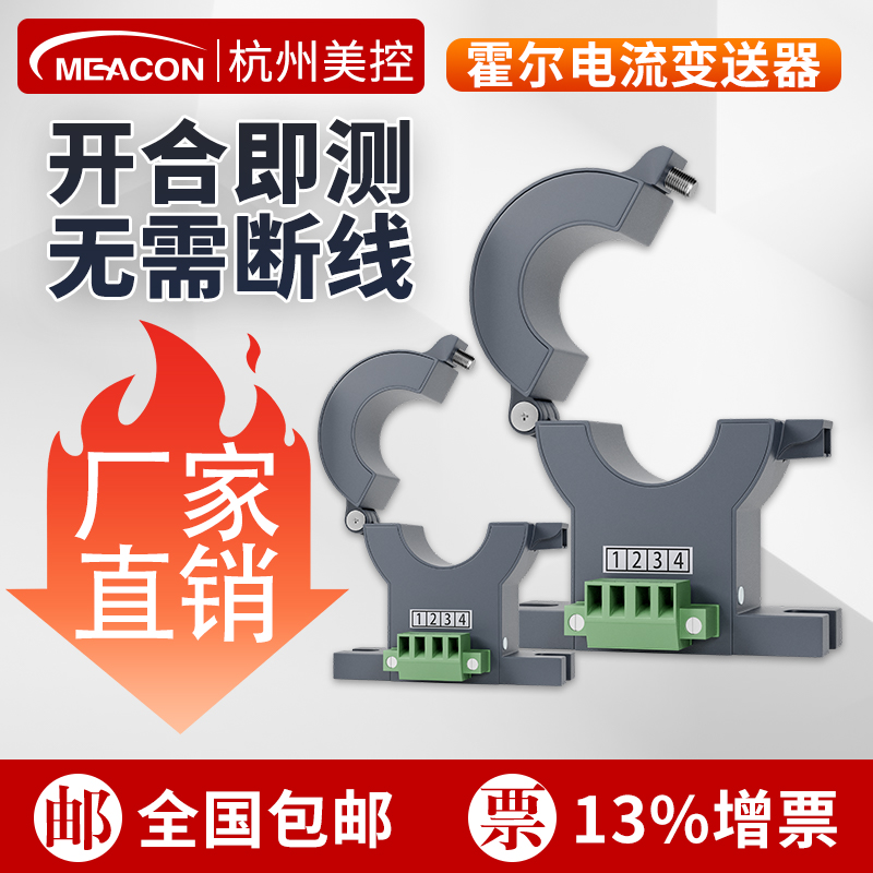 美控霍尔电流传感器互感交流直流电流变送器开合式4-20mA检测穿孔