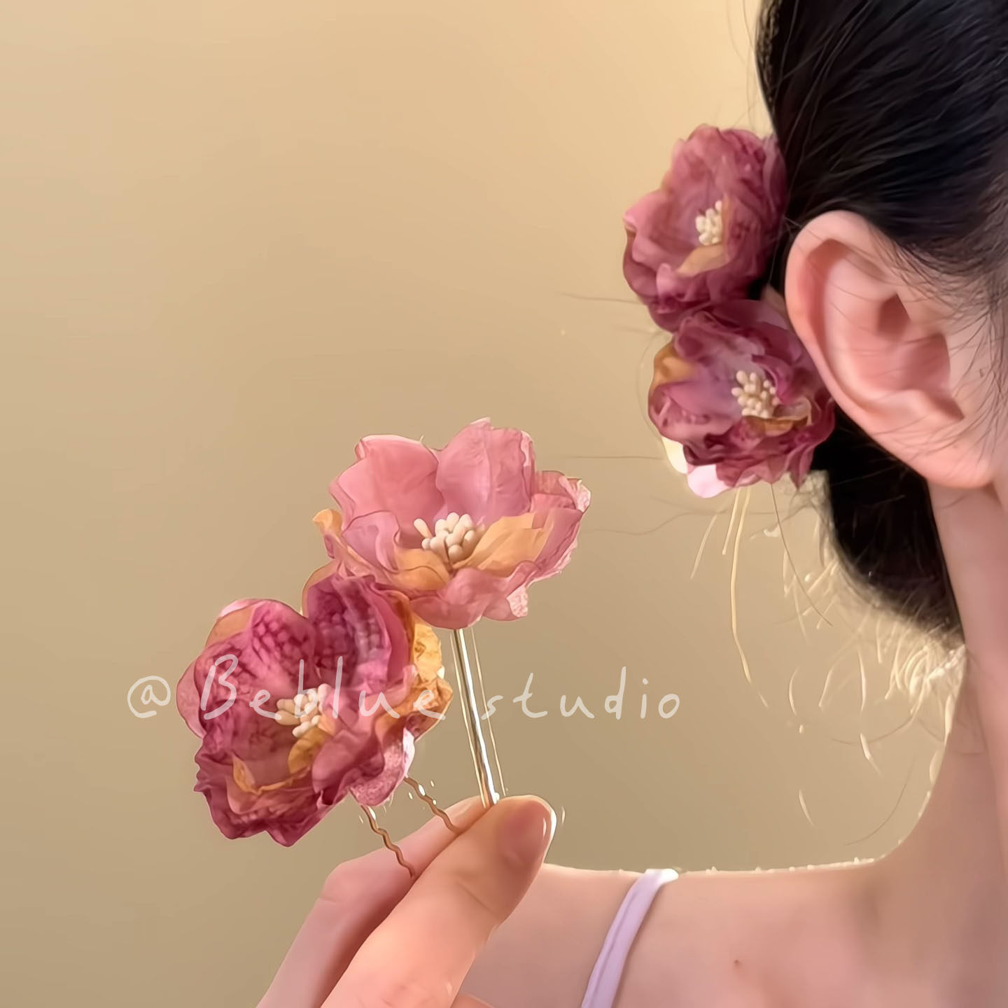 山沐手作「未闻花名」新中式红色花朵发簪女发钗新娘订婚旗袍发饰