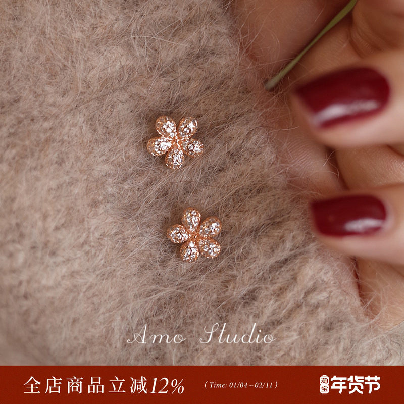 AMO未闻花名满钻花朵耳钉女2025新款轻奢高级感甜美少女冬天耳饰