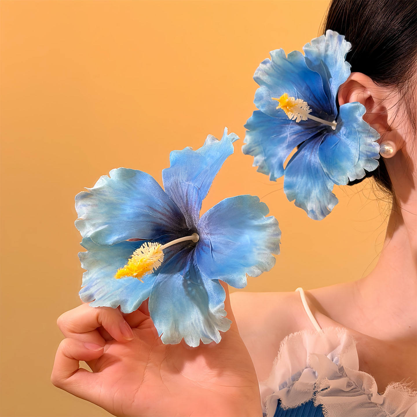未闻花名~蓝色扶桑花朵发夹女海边出游度假风拍照头饰侧边夹发卡