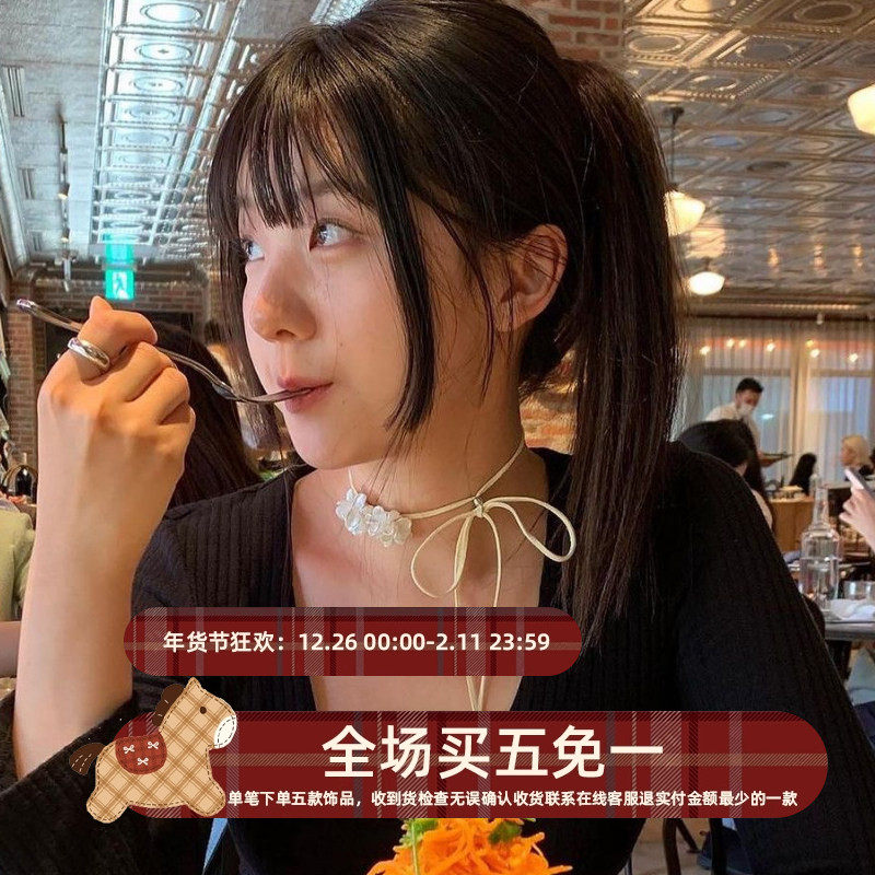 未闻花名亚克力花朵choker复古韩国项链超仙绑带锁骨链小众设计感