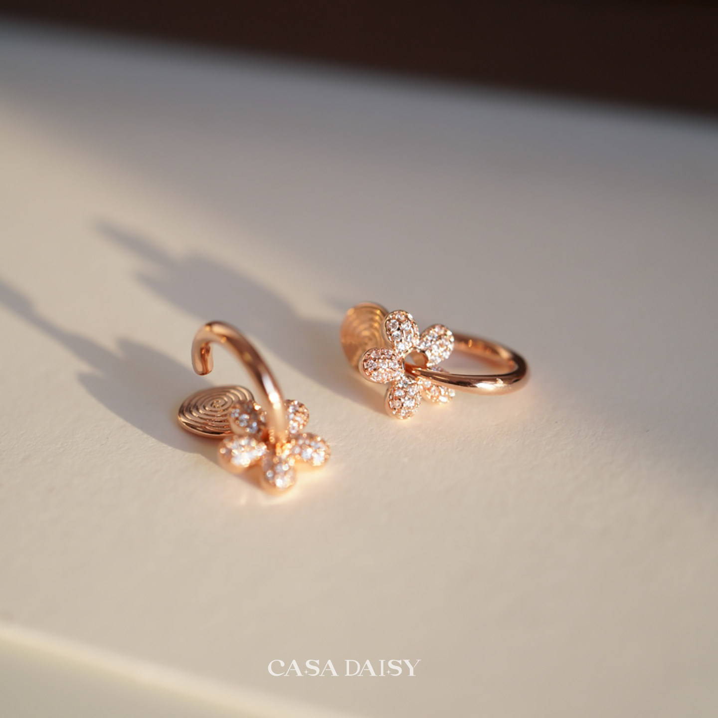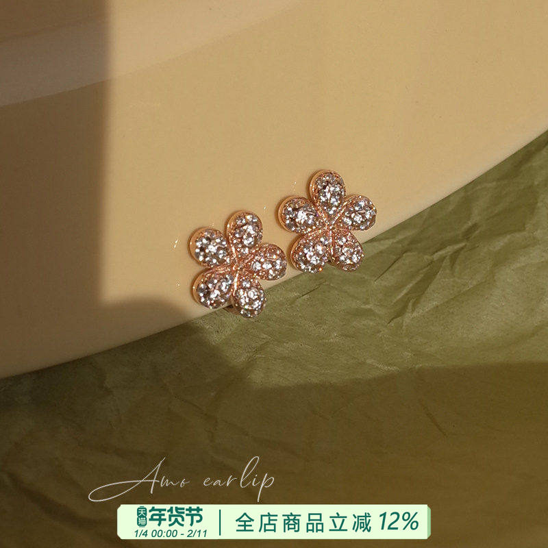 「未闻花名」满钻轻奢锆石花朵气质无耳洞耳夹小众设计感耳环耳饰