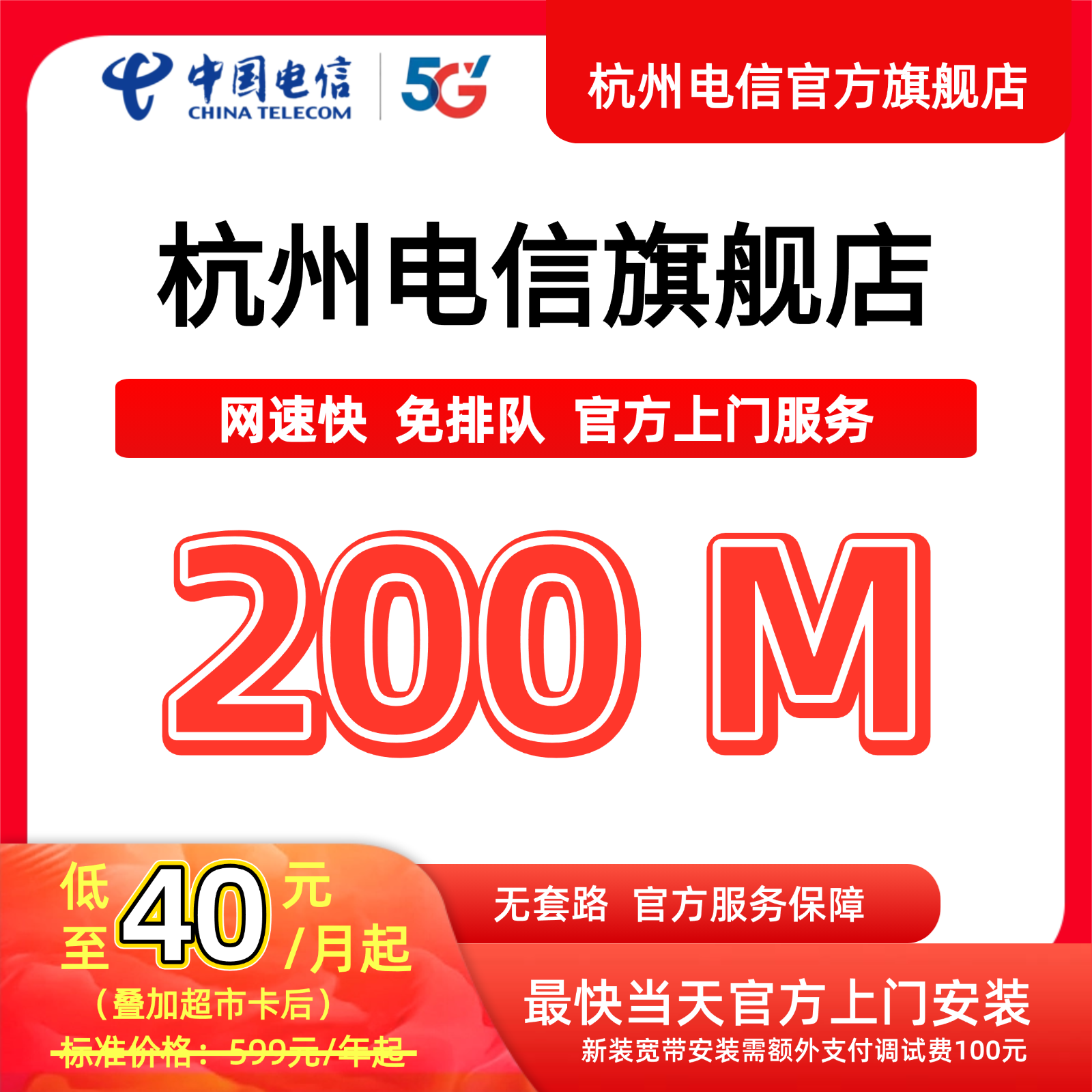 中国电信宽带杭州电信宽带办理官方上门安装wifi浙江宽带续约200M