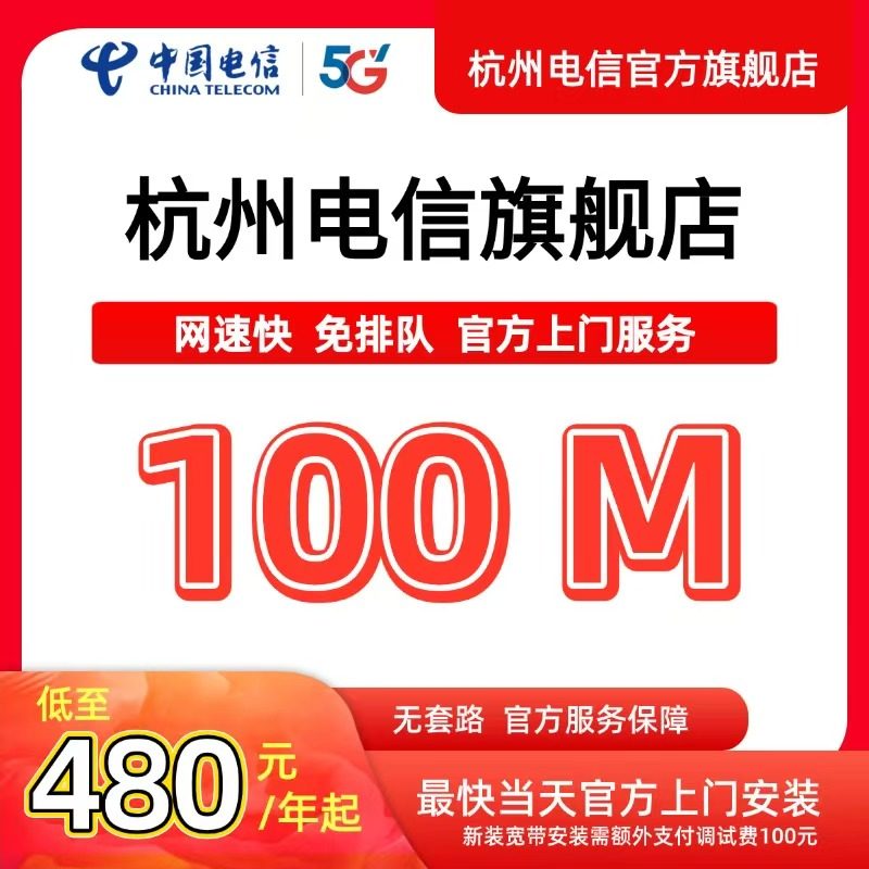 官方旗舰店杭州浙江中国电信宽带办理新装续费包年上网套餐100M