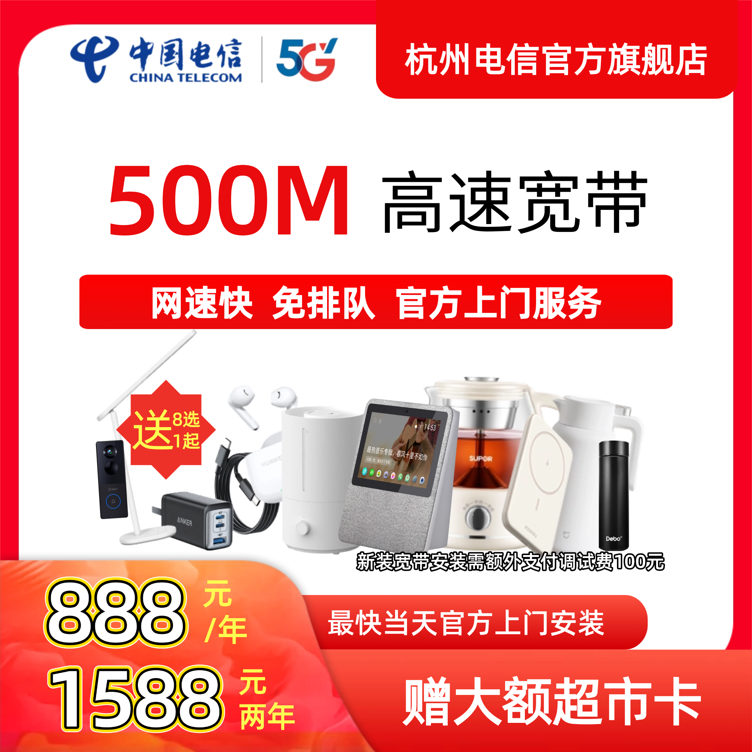 中国电信宽带杭州电信宽带办理官方上门安装wifi浙江宽带续约500M