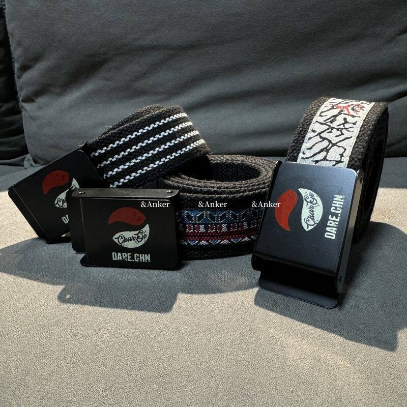 腰带男设计感小众新款骷髅头男士皮带女式装饰青少年帆布牛仔裤带