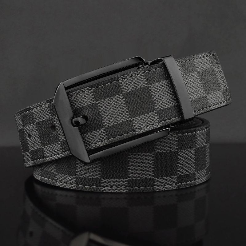 新款格子纹休闲皮带男士针扣腰带青少年韩版潮流时尚百搭裤袋学生