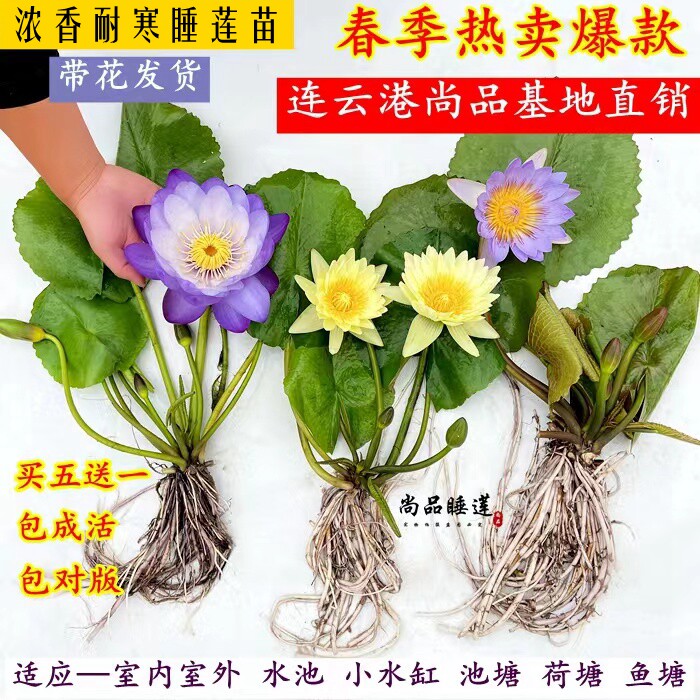 睡莲水培植物四季水养水莲花苗耐寒大睡莲根块荷花室内外花卉盆栽