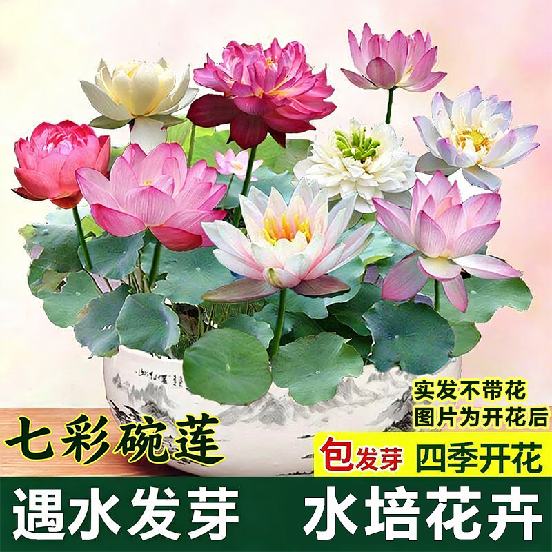 碗莲种七彩五颜六色水培花卉水养四季莲花荷花种莲藕绿植水培莲子