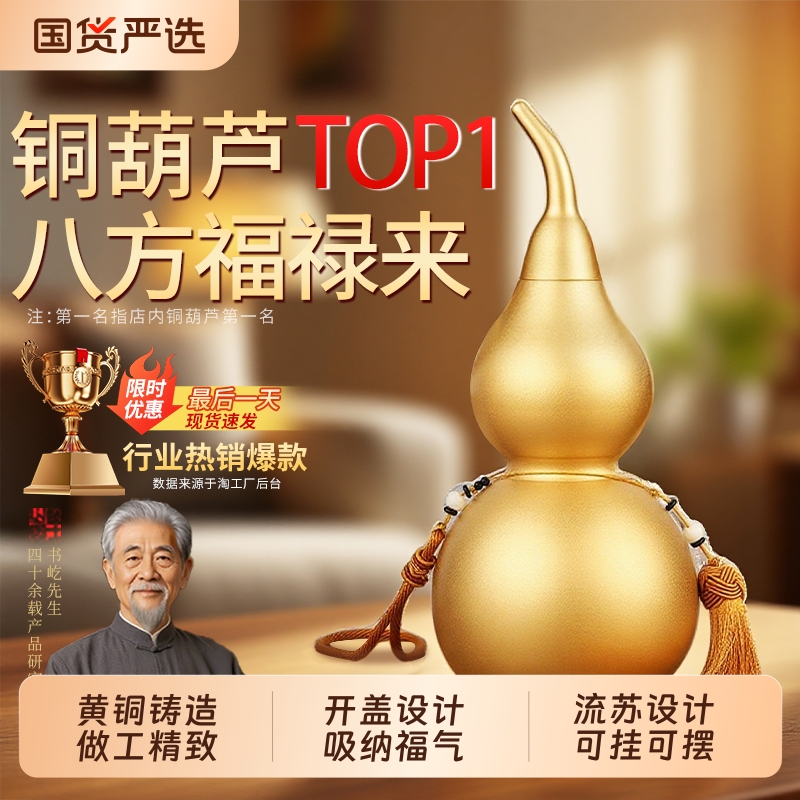 百纳源铜葫芦摆件开盖开口空心纯黄铜百福葫芦家居客厅卧室装饰品