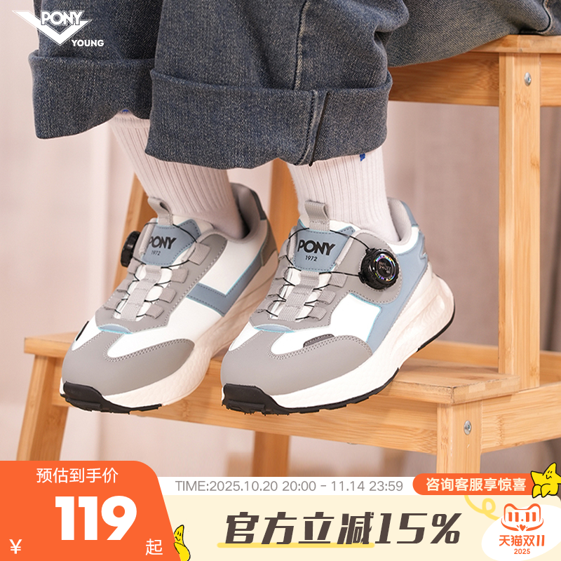 pony儿童旋钮运动鞋男童女童轻便跑步鞋小学生秋款童鞋防踢缓震