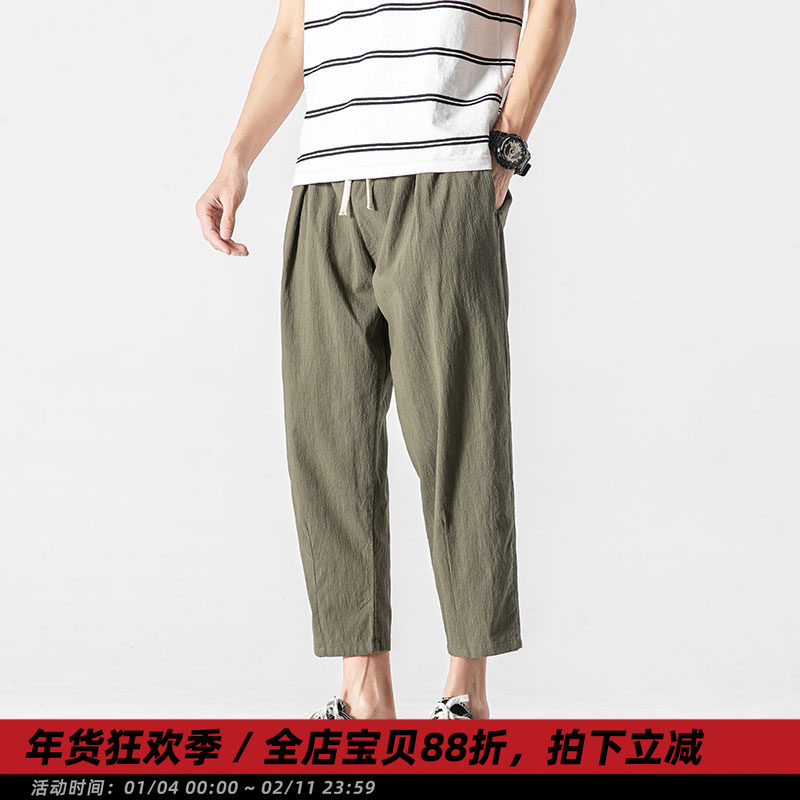 「褶线布裤」夏季日系纯色直筒休闲九分裤男宽松青少年薄款长裤潮