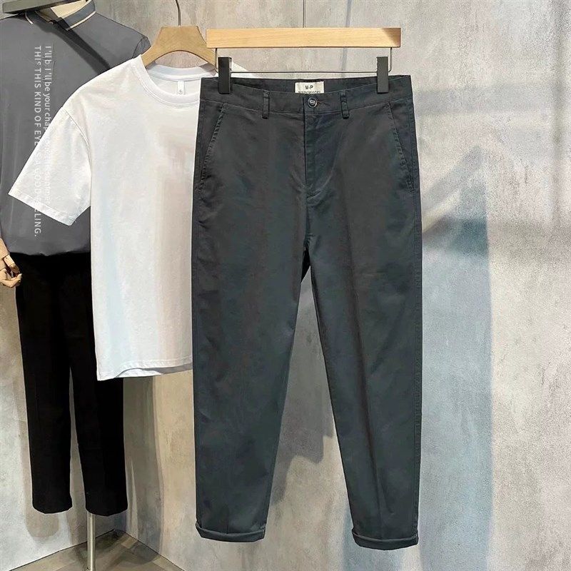 春夏季纯棉布裤男士韩版修身直筒商务休闲九分裤百搭显高休闲西裤