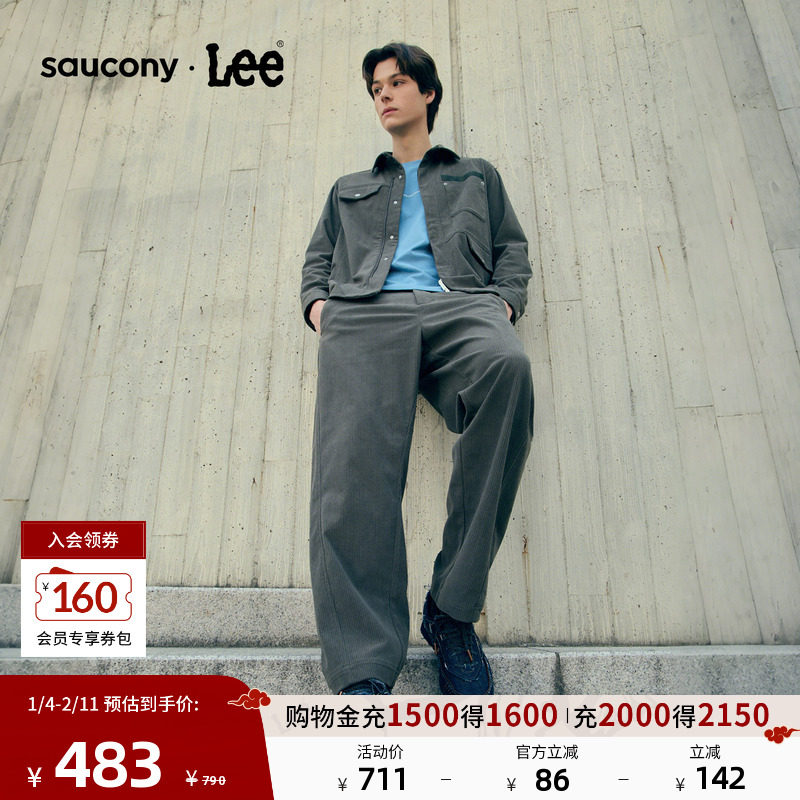 Lee × Saucony联名商场同款25秋冬新舒适锥形枯木灰男休闲布裤