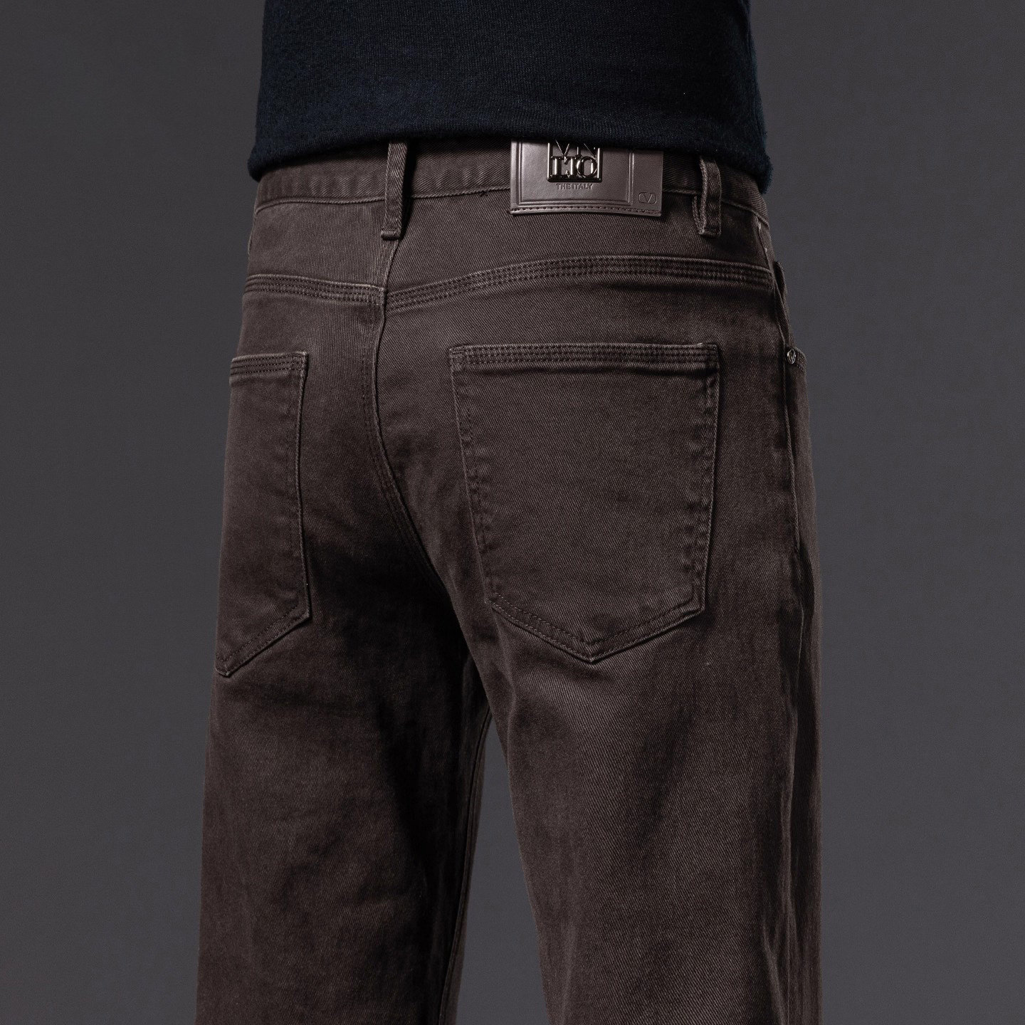 高端咖啡色纯棉裤子男士2026春季新款牛仔布裤男春秋直筒休闲男裤