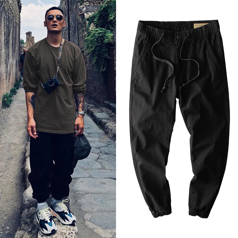 重磅全棉束脚裤男春秋复古休闲长裤柔软帆布裤宽松潮流工装裤子男