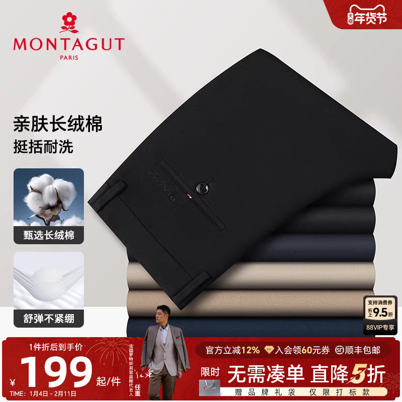 [长绒棉/经典布裤]梦特娇春季男士休闲裤商务纯色棉直筒长裤亲肤J