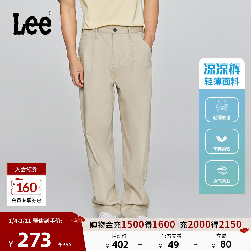 Lee凉凉裤商场同款25新品601宽松中腰直筒轻薄男工装休闲布裤潮流
