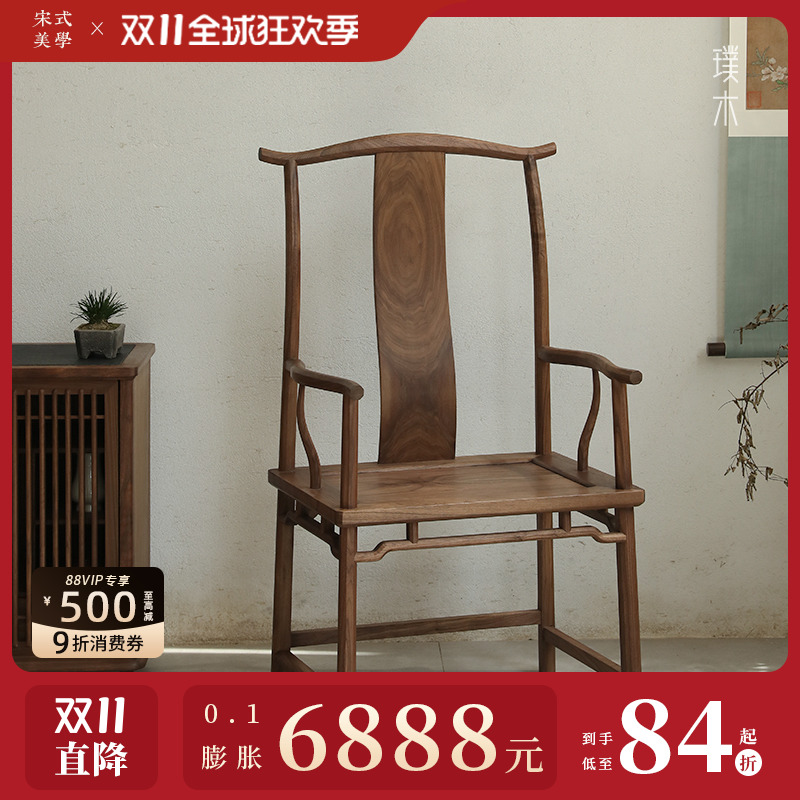 璞木新中式实木官帽椅黑胡桃木茶椅太师椅圈椅主人椅禅意书房书椅