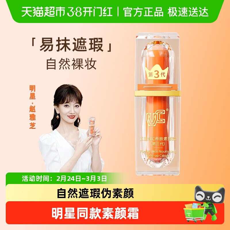 VC五重维C素颜霜伪自然水润提亮遮瑕妆前隔离打底懒人抗皱面正品