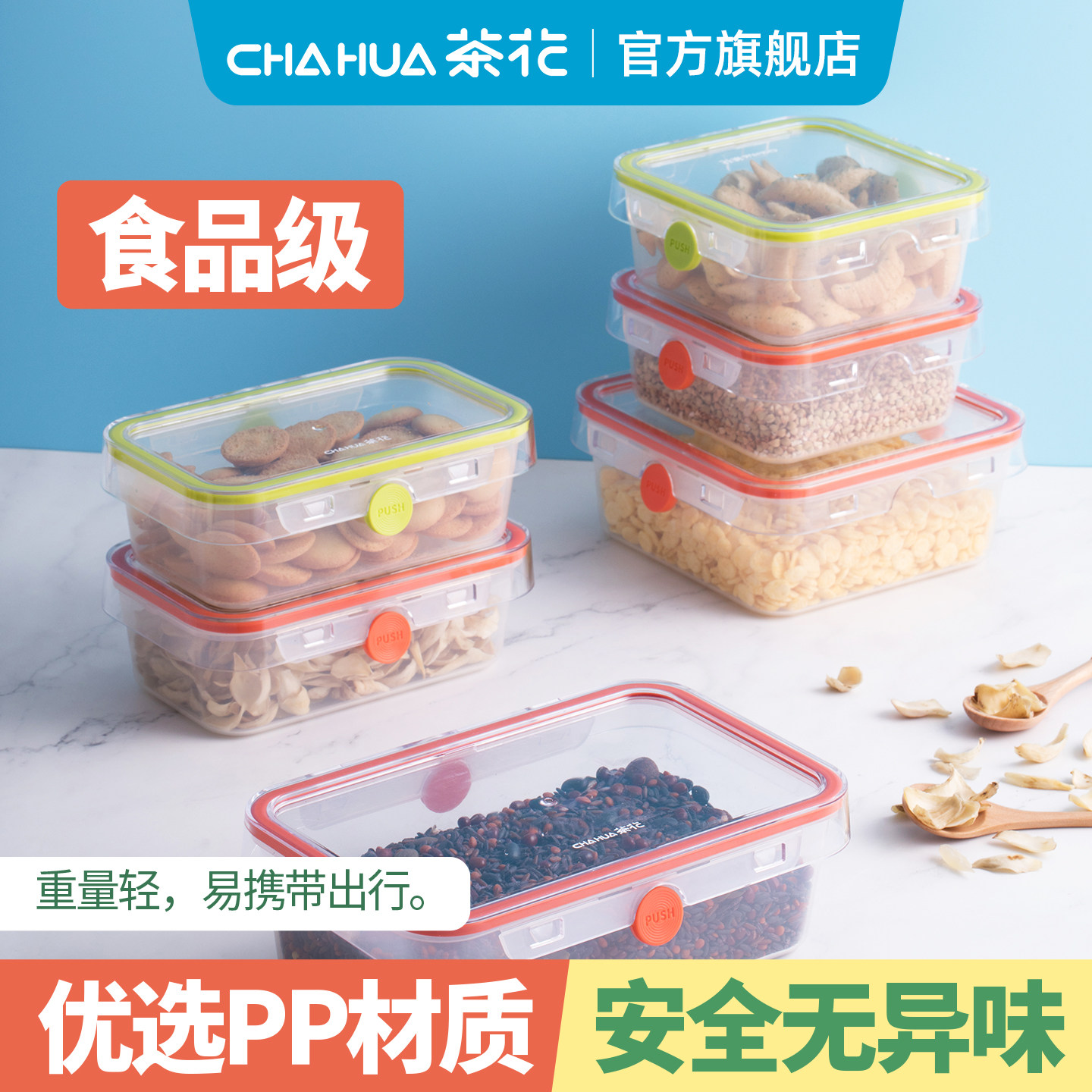 茶花塑料保鲜盒带盖水果五谷杂粮收纳盒加厚塑料冰箱储物盒密封罐