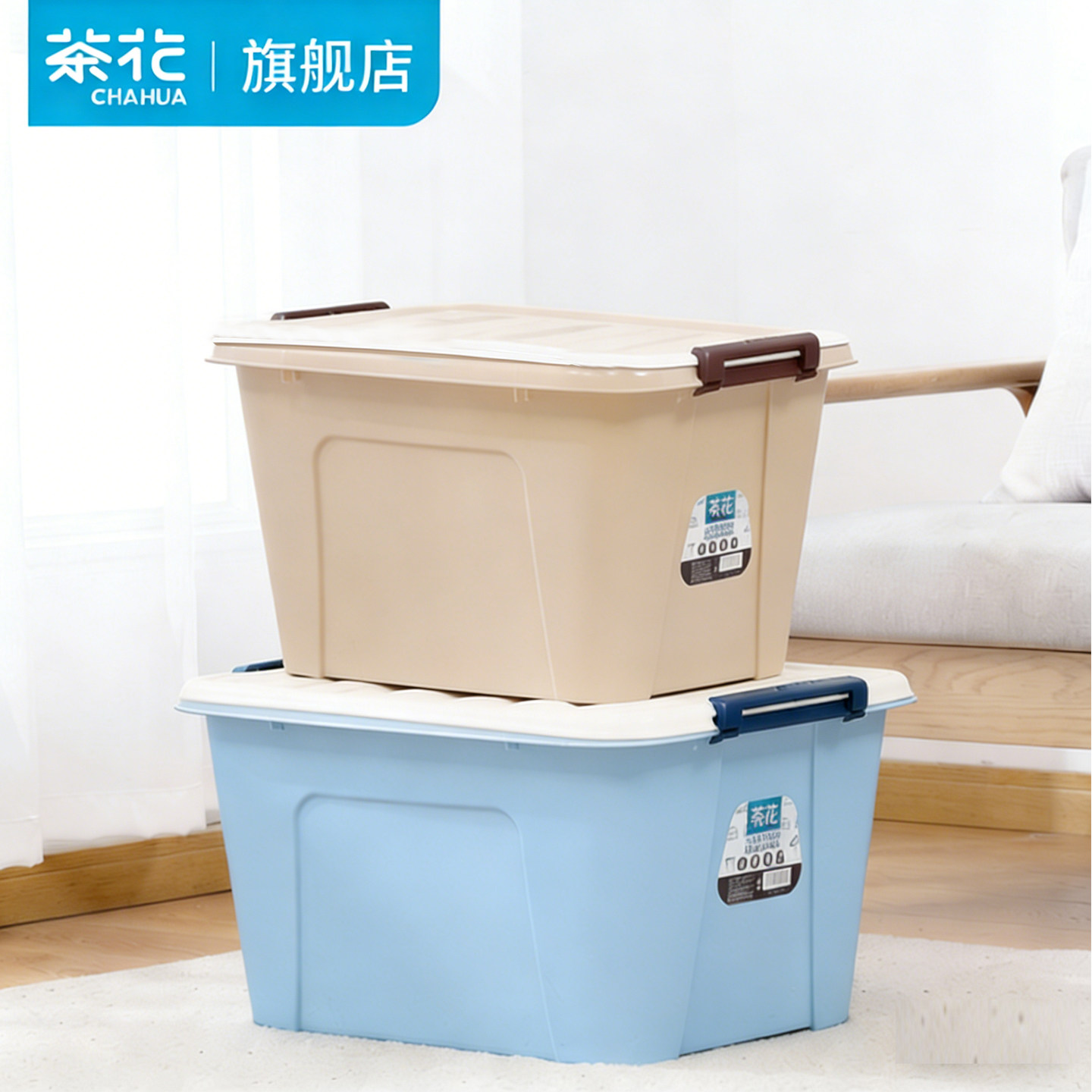 茶花收纳箱家用塑料储物箱加厚大号衣服棉被收纳盒整理箱有盖收纳