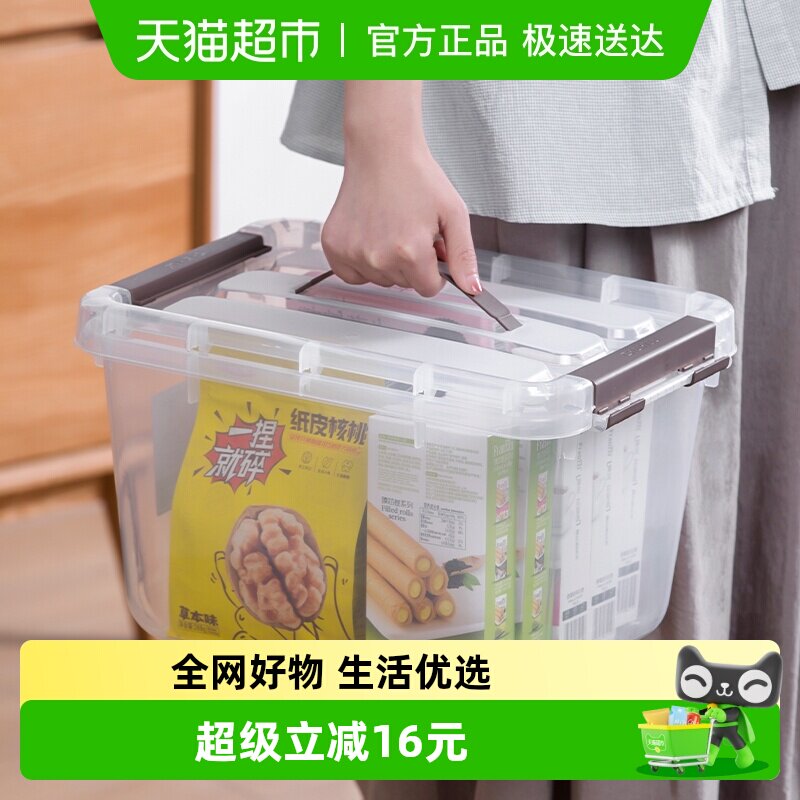 茶花收纳箱塑料加厚特大号收纳盒家用衣服零食有盖透明搬家整理箱