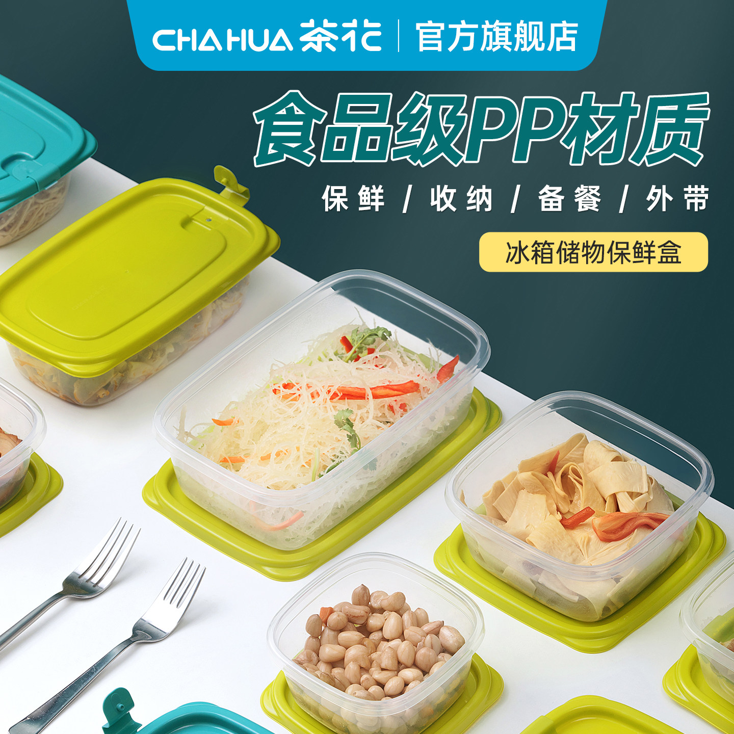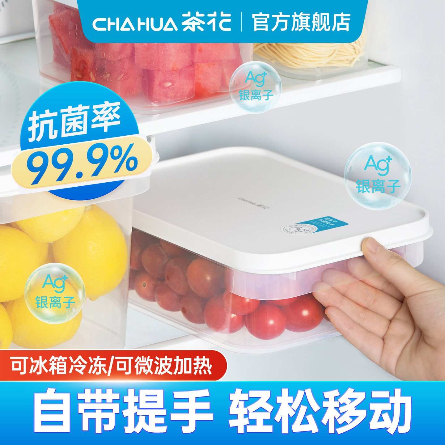茶花保鲜盒食品级冰箱收纳盒冷冻专用水果便当盒塑料野餐盒子饭盒