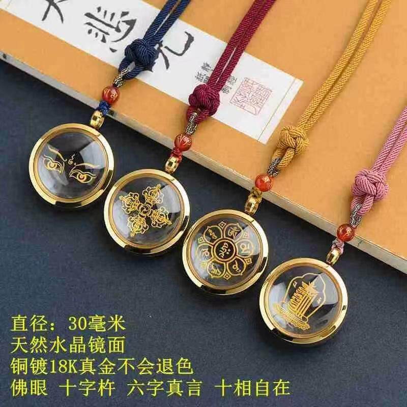琉璃楞严咒吊坠挂件 圆形 椭圆形楞严咒结缘六字真言项链饰品男女