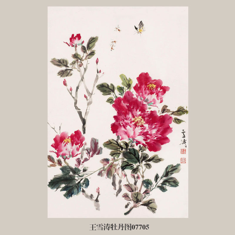 画说王雪涛牡丹图水墨花鸟画国画卷轴挂画名画复制品仿古画装饰画