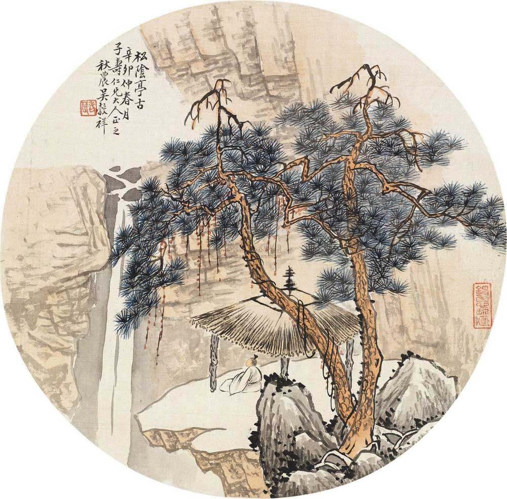 清松阴亭古团扇片山水画团扇仿古画册页复制品书房卧室挂画装饰画