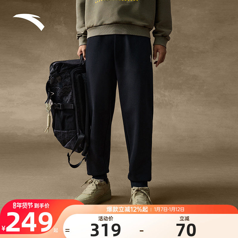 安踏欧文系列男子针织运动长裤2025冬季流光风加绒保暖束脚卫裤子