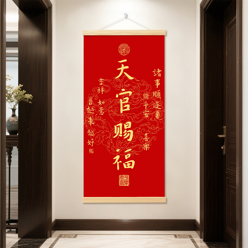 越来越好书房办公室书法挂画天官赐福客厅玄关祝福背景墙壁装饰画