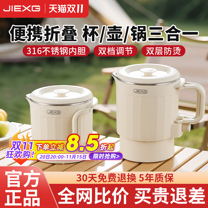 德国JIEXG全钢折叠烧水壶旅行出差便携式不锈钢电热杯酒店开水壶