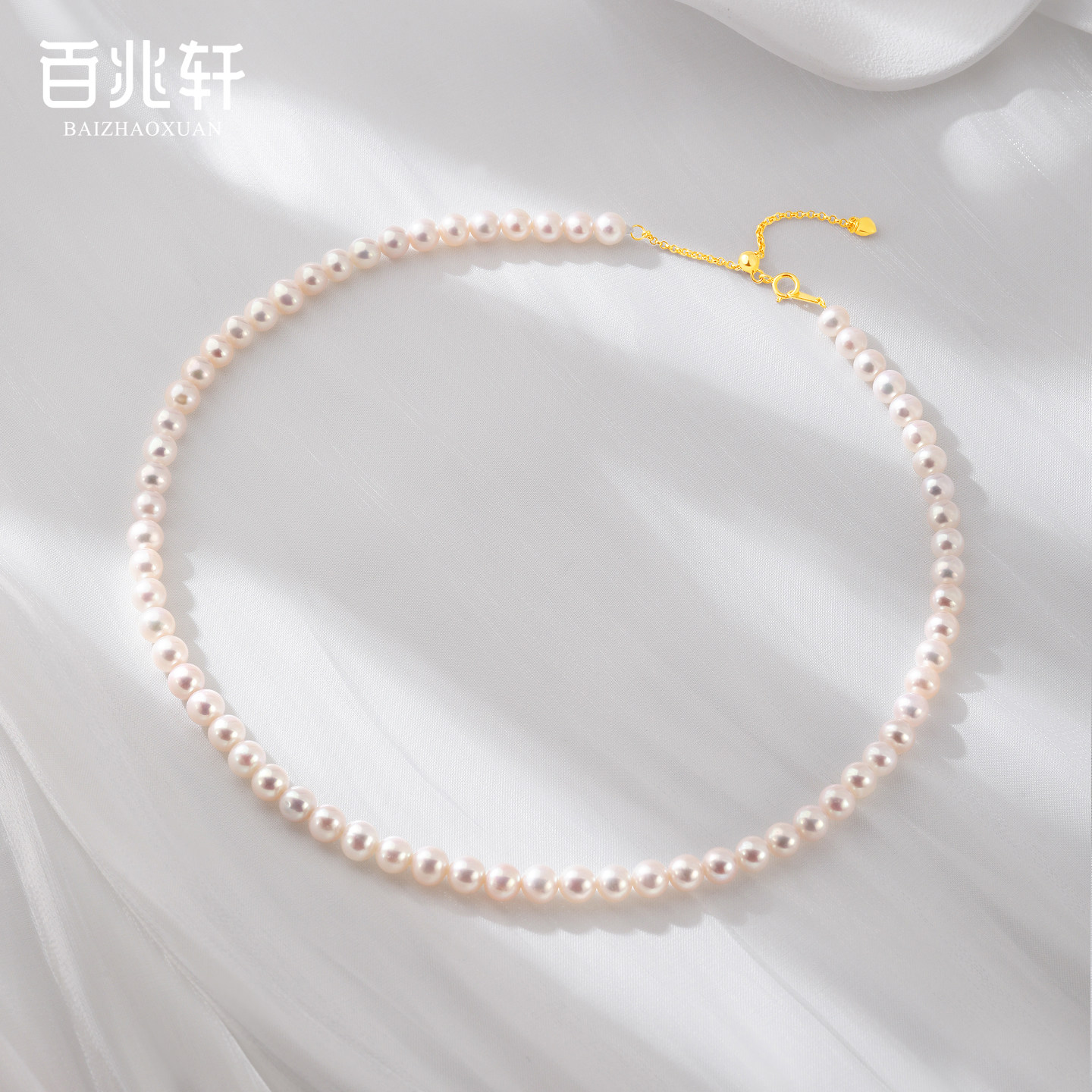 百兆轩天然珍珠项链正圆强光小米珠颈链baby珠锁骨链女友生日礼物