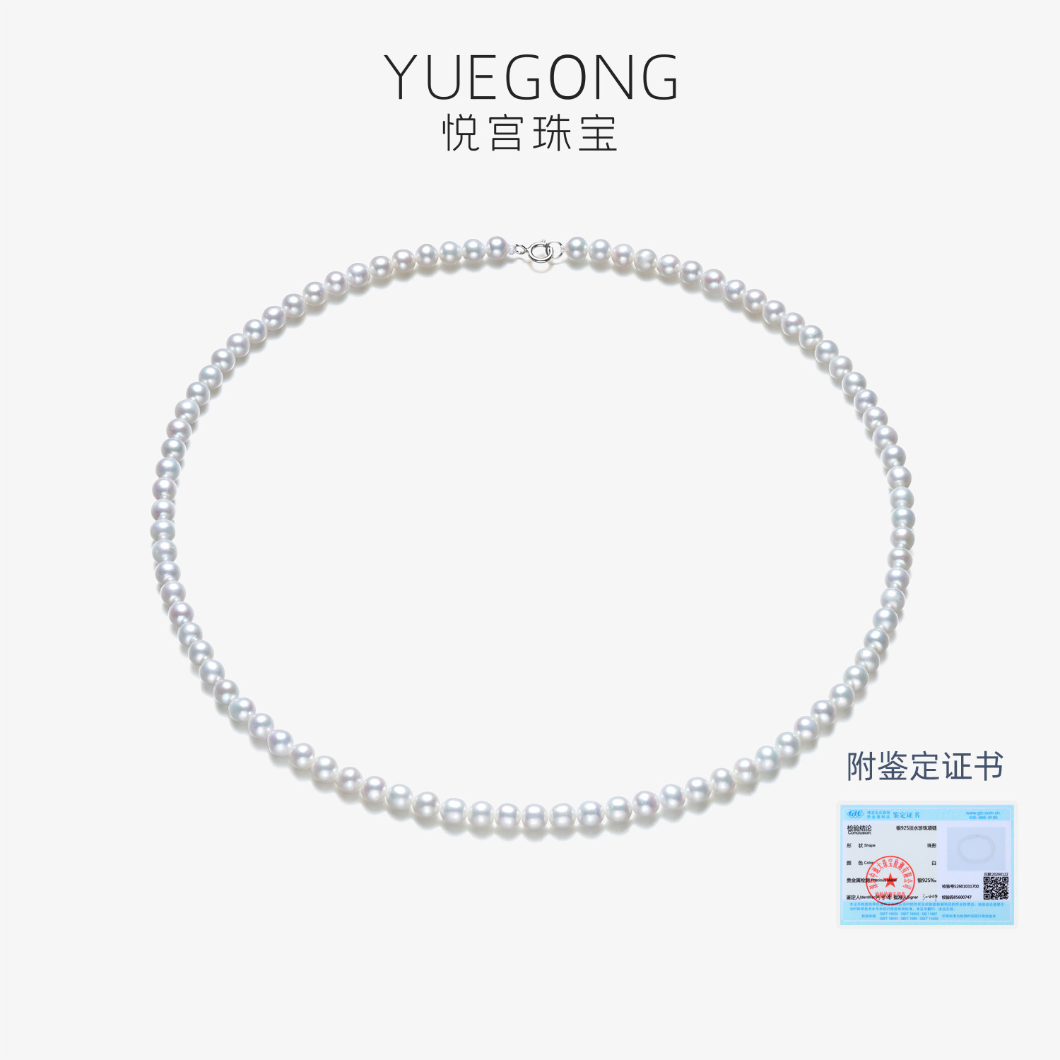 悦宫珠宝月白 4-5mm近圆淡水珍珠项链baby珠小米珠颈链S925银扣