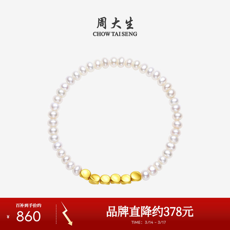 周六福碎银子几两手链女S925银淡水珍珠手饰优雅节日礼物送女友