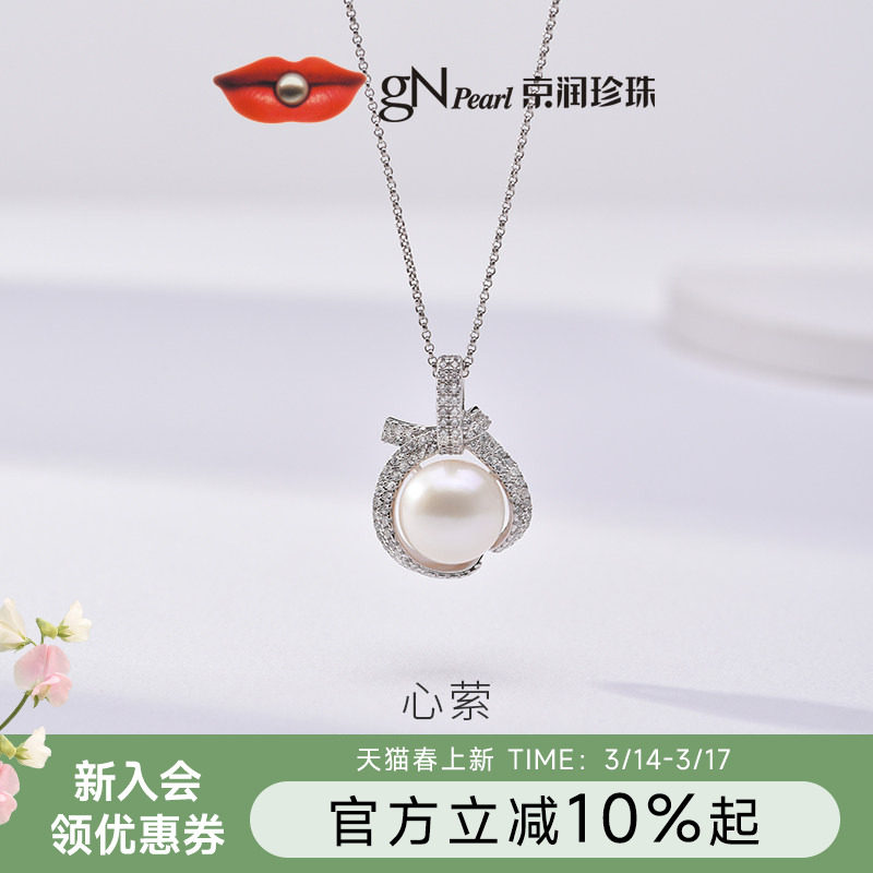 京润珍珠 心萦925银淡水珍珠吊坠10-11mm优雅生日礼物送闺蜜女友D