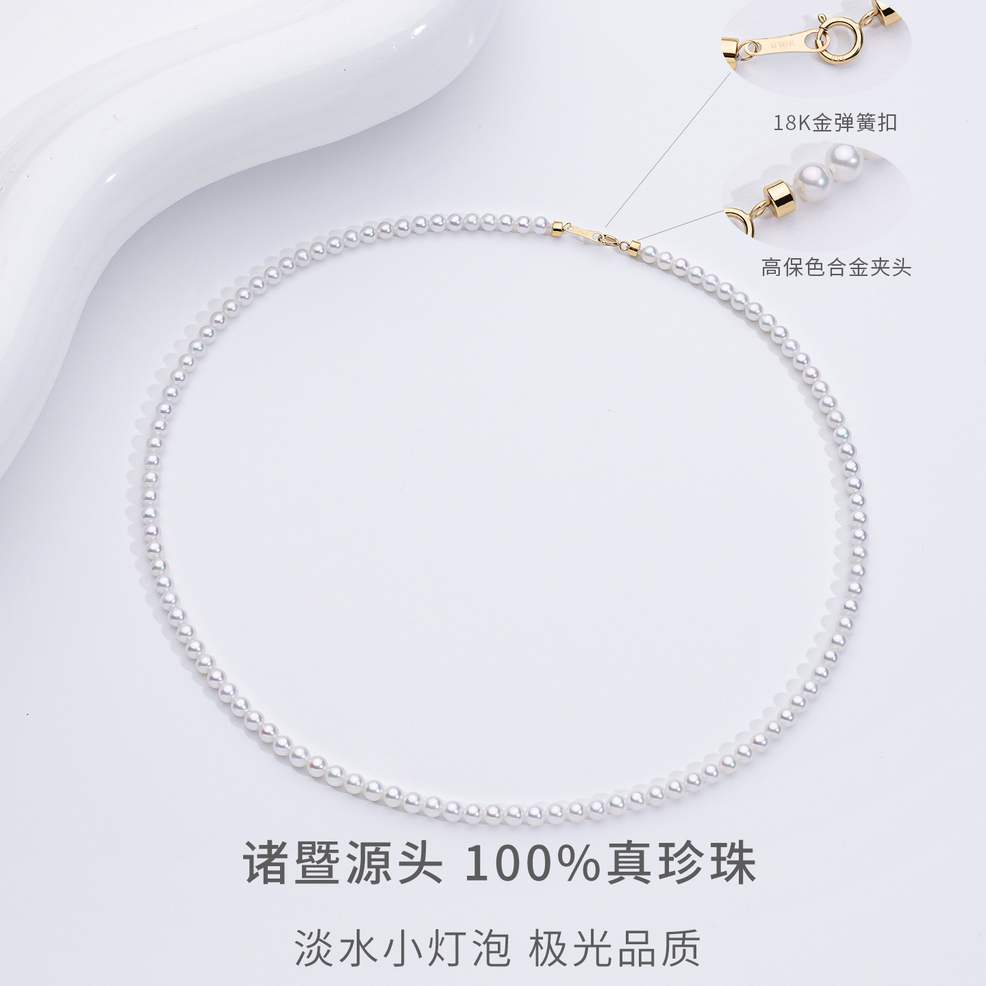 诸暨淡水珍珠项链女18K金正圆baby小米珠锁骨链时尚气质百搭礼物